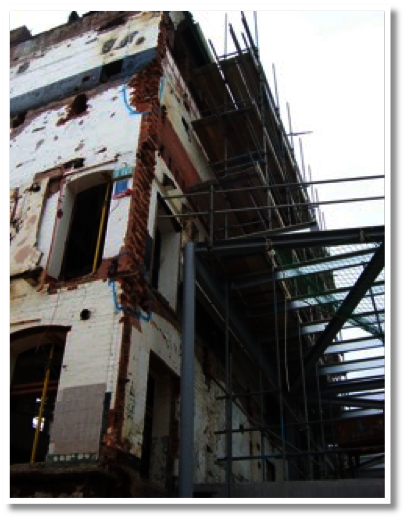 In 2005 our brief was to clad and align two internal facades to join the existing facades to create a Tower. The North and East cornices and brickwork had never previously aligned up, neither had the South and West so the challenge was to line the tower up on all for sides and create the effect that the tower was always one. The difficult part was that NE corner and SW corner were way off target so we had to throw the levels away and play it to the eye. This is what brick restoration is all about.
