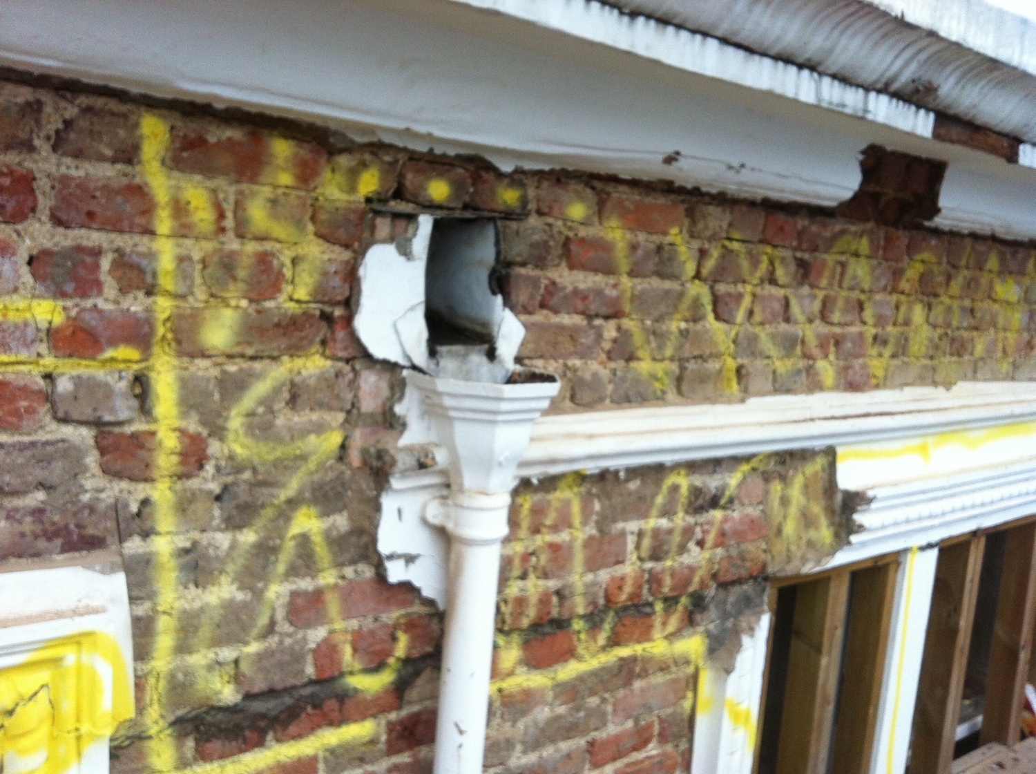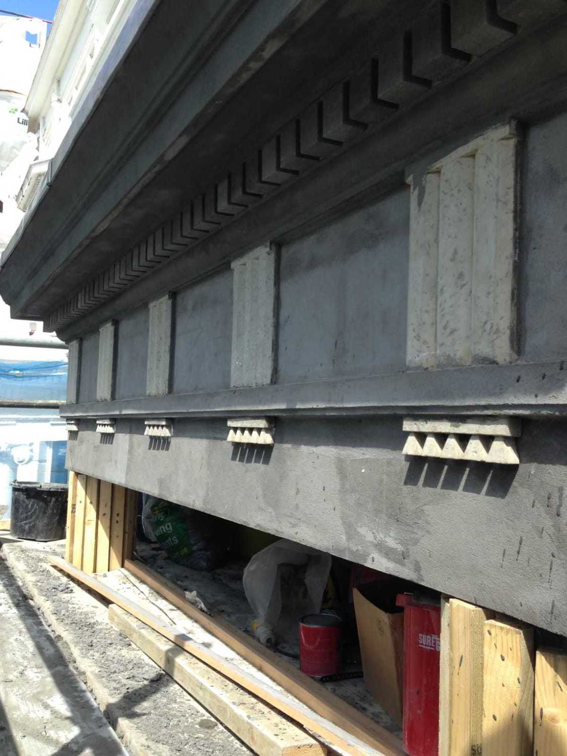 This project was completed in 2014 the building had subsidence which involved an intense programme of repair and re-build prior to the stucco facade being restored.