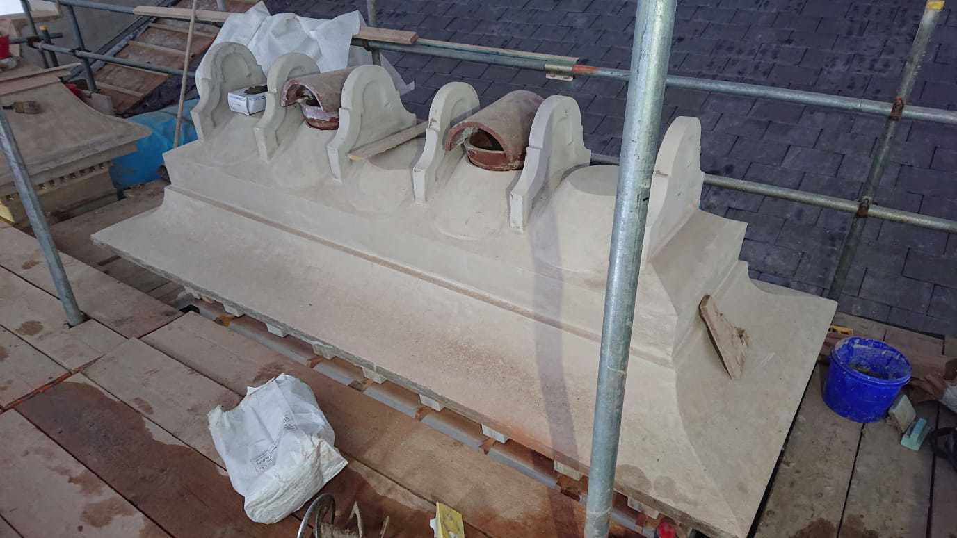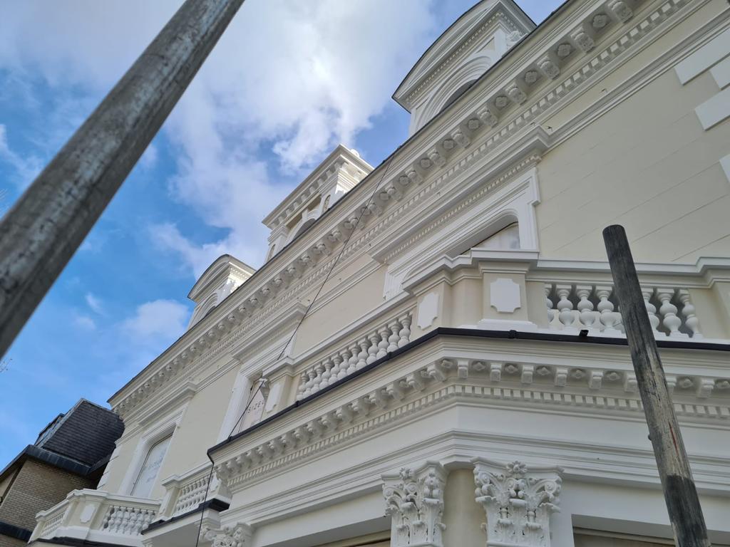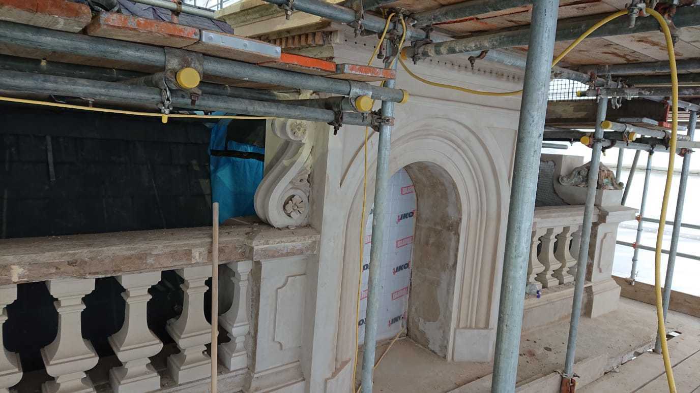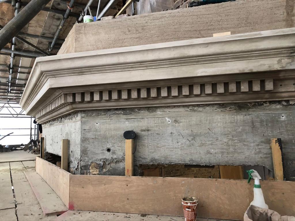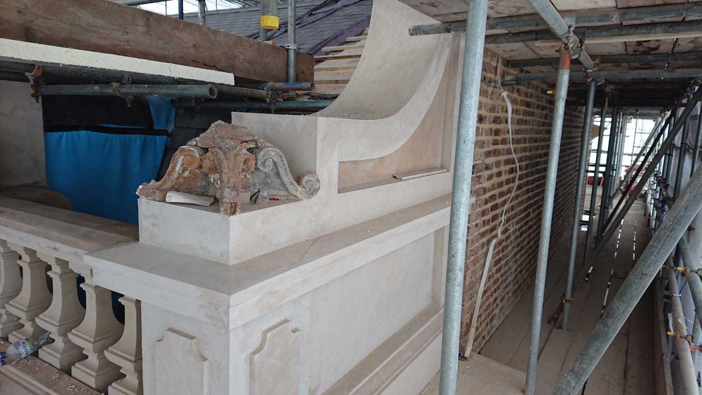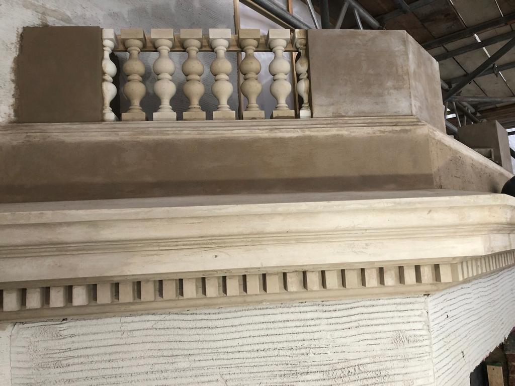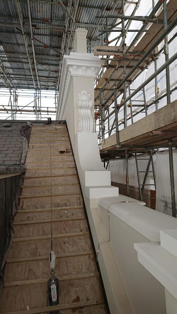 This is one of our recent projects that involves a full restoration to the feature work on the facade. The photos are showing working progress with the stucco moulds on this project.