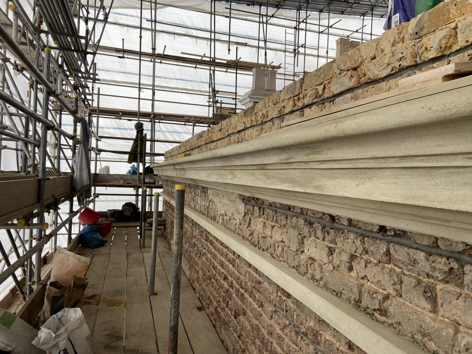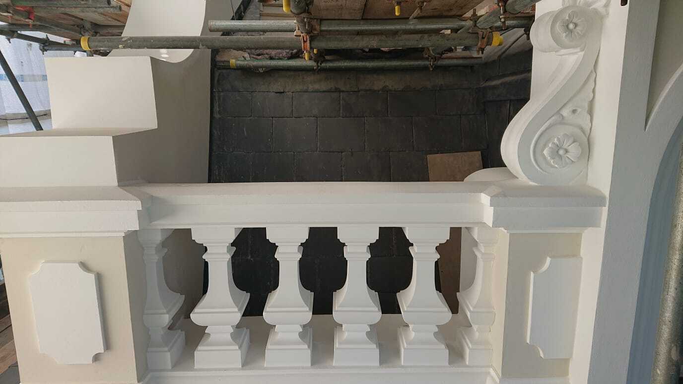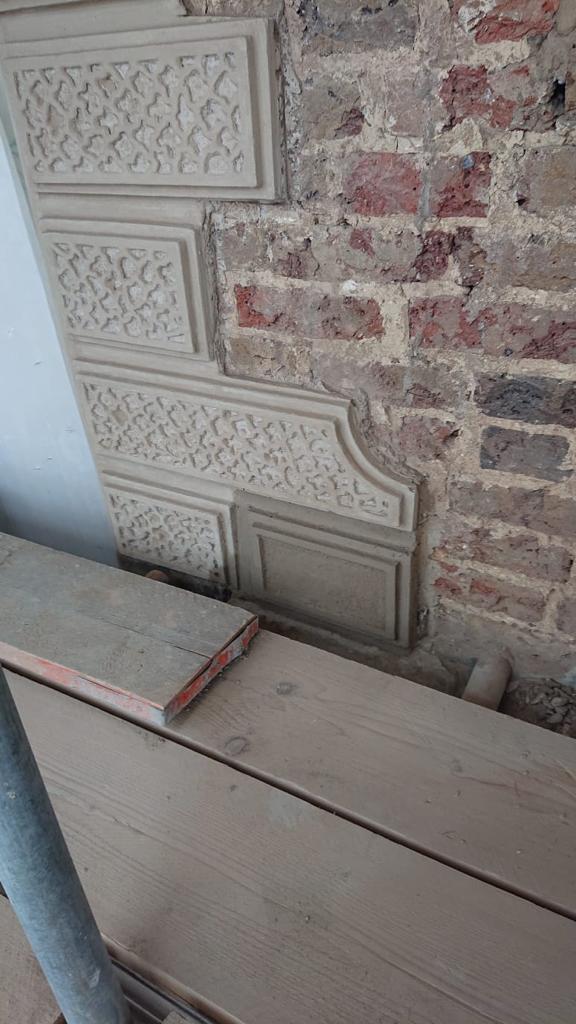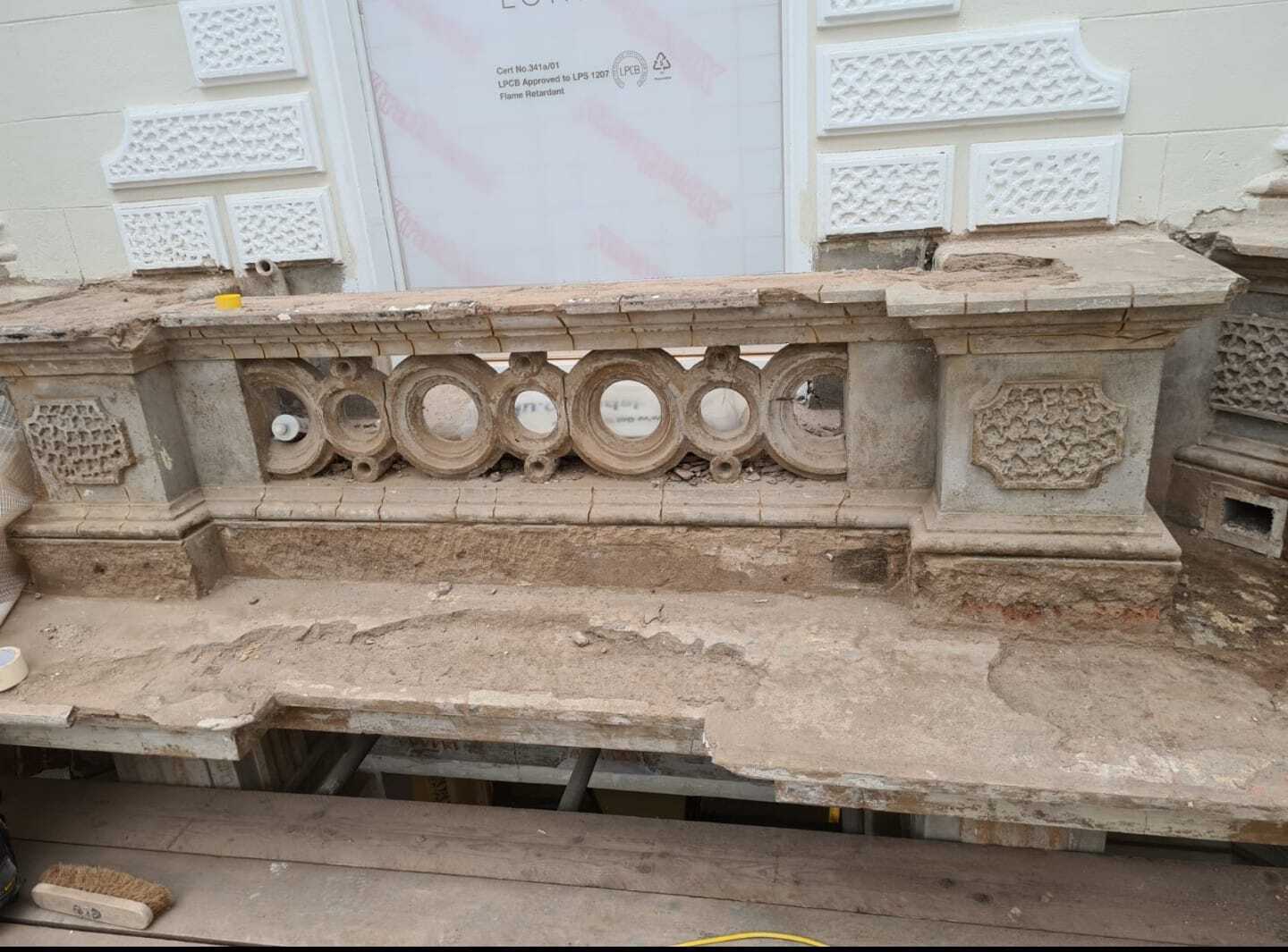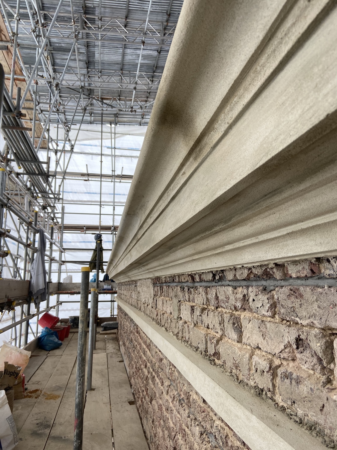 This is one of our recent projects that involves a full restoration to the feature work on the facade. The photos are showing working progress with the stucco moulds on this project.