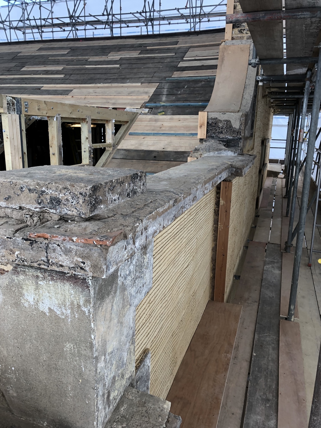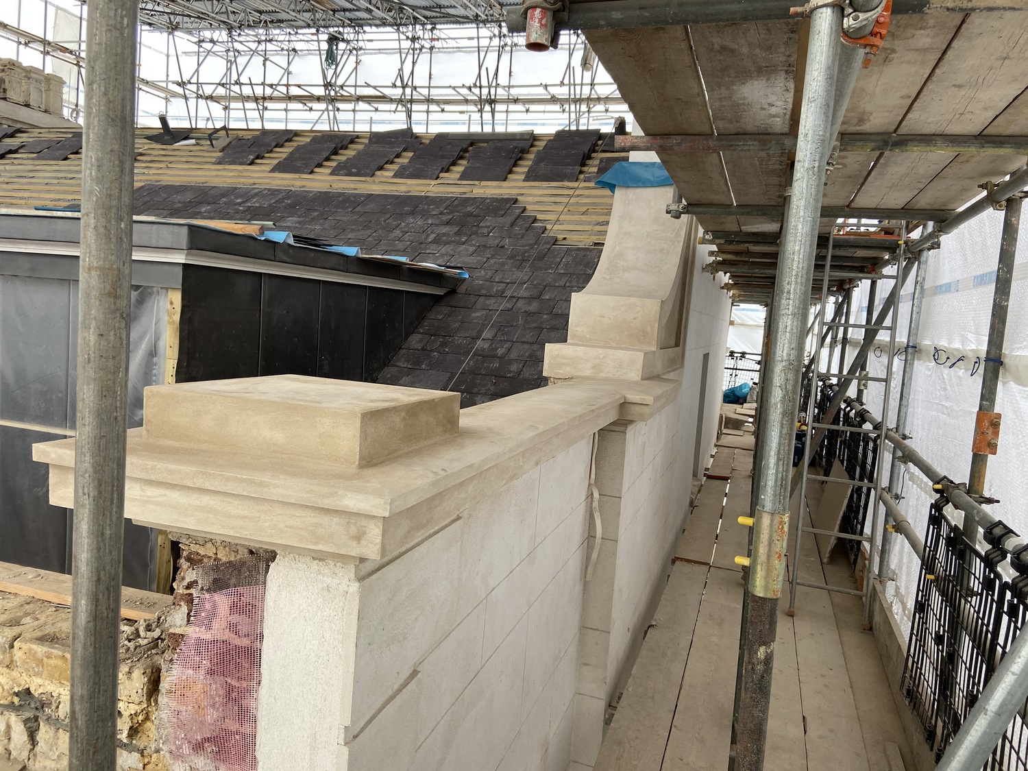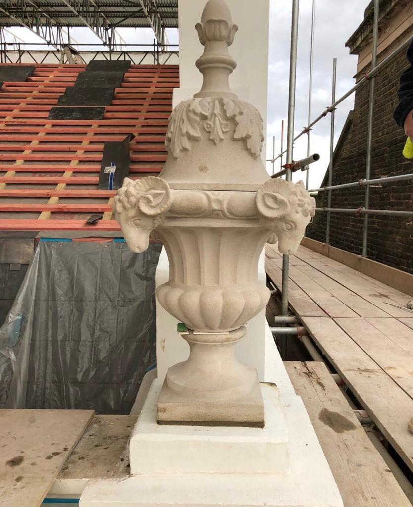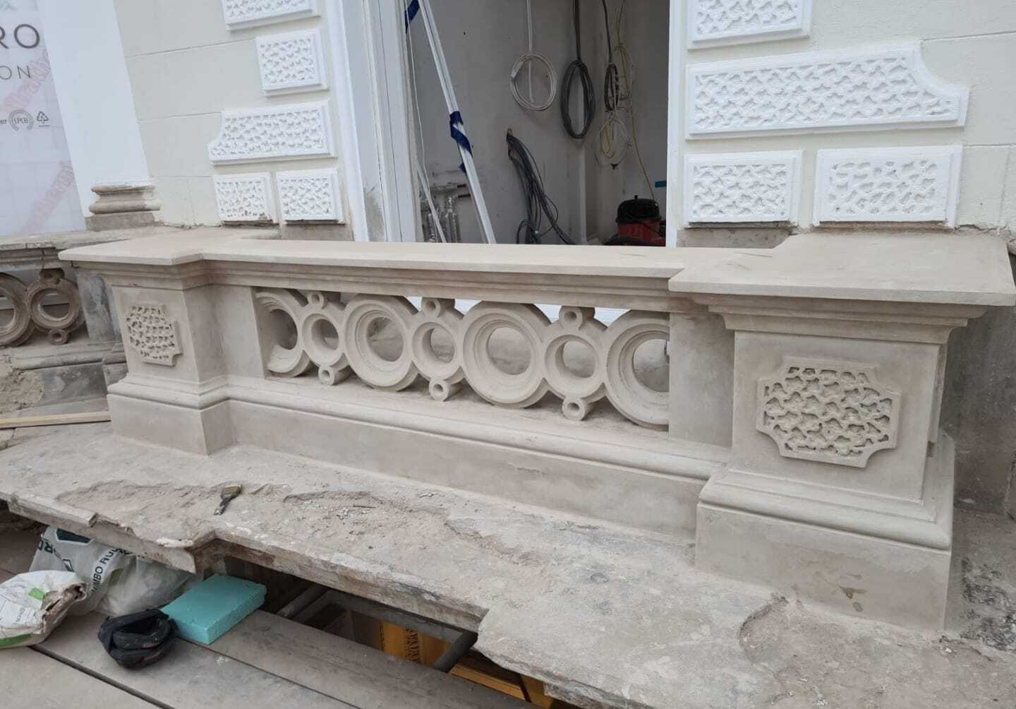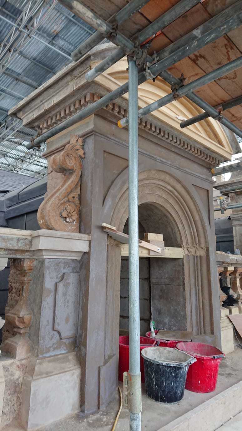 This is one of our recent projects that involves a full restoration to the feature work on the facade. The photos are showing working progress with the stucco moulds on this project.